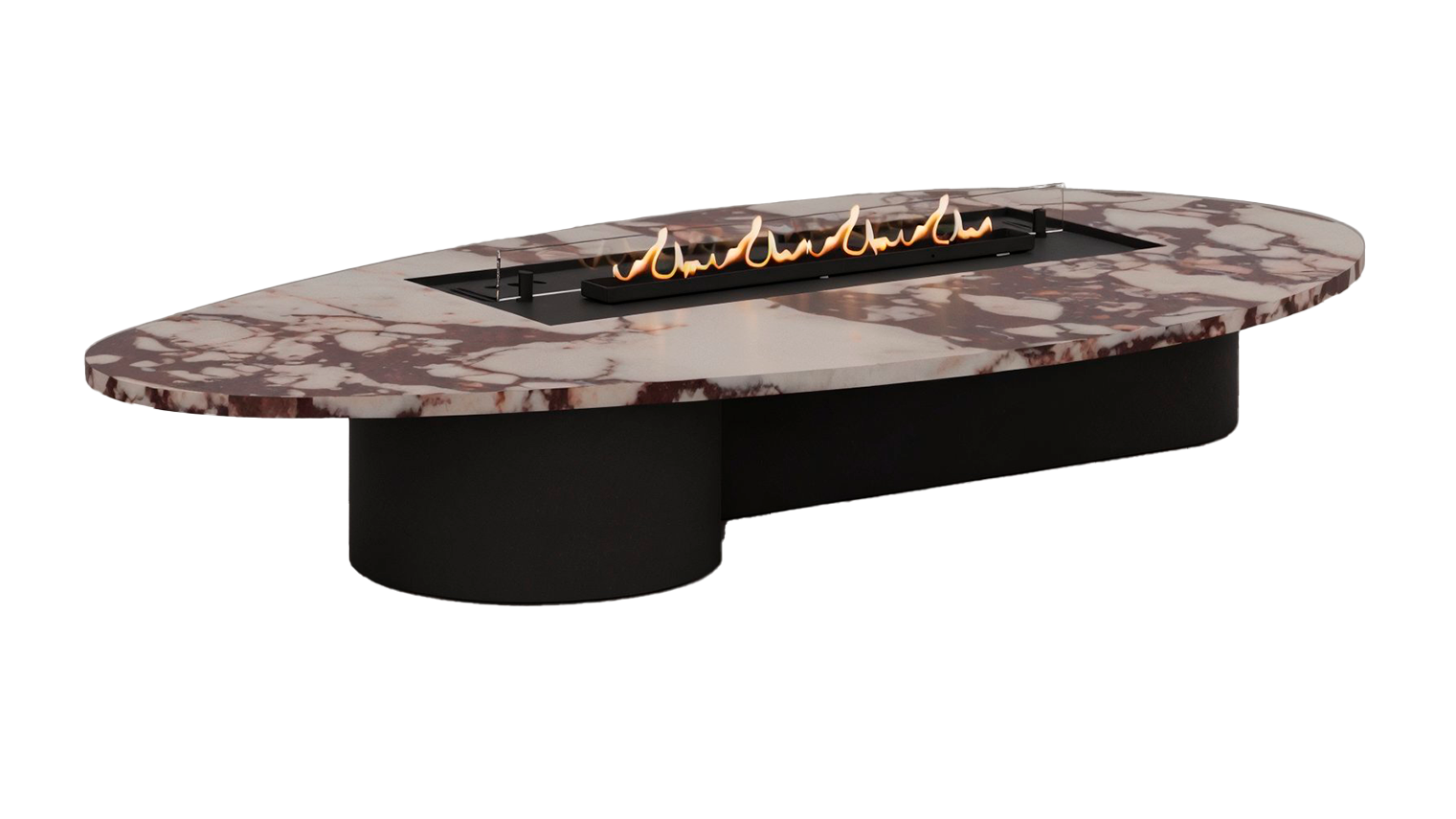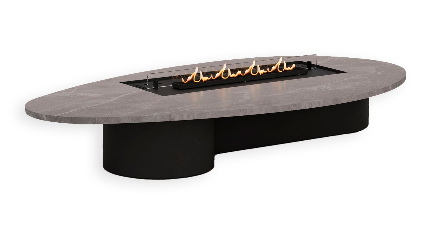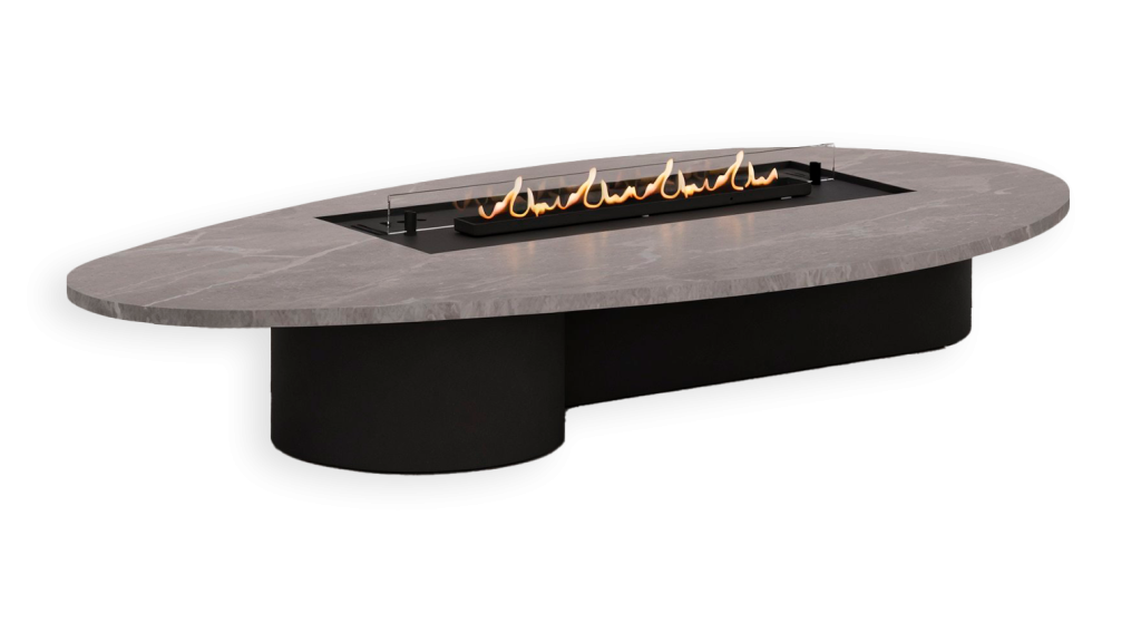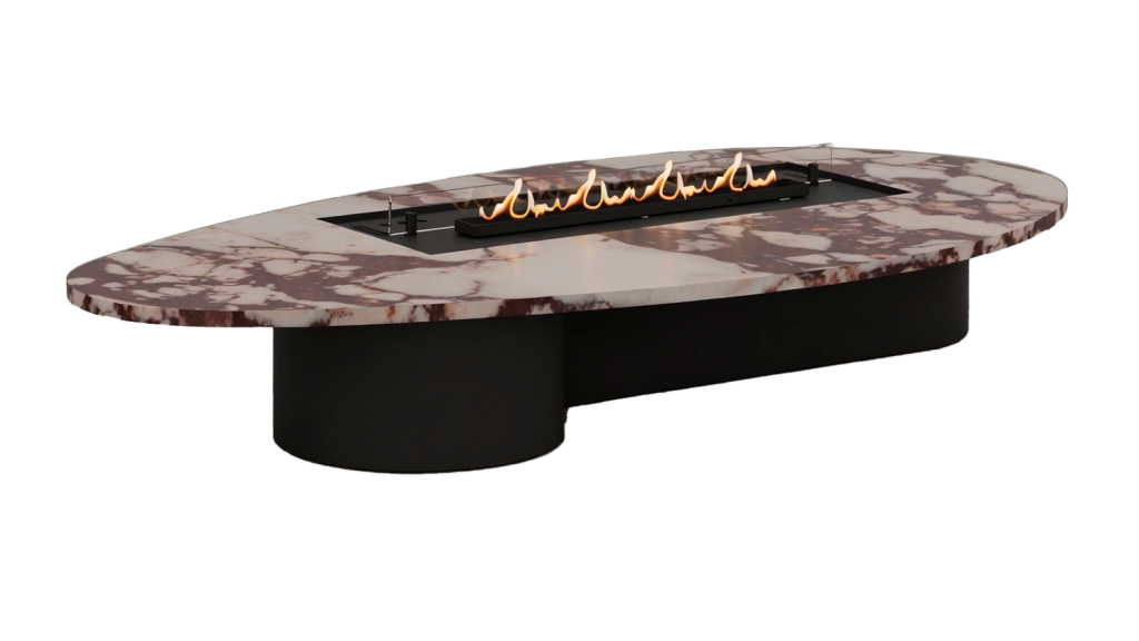 This fireplace stands out for its circular shape and harmonious integration with the environment. The rounded form of the Benedita allows a panoramic view of the flame, creating a warm and sophisticated atmosphere.