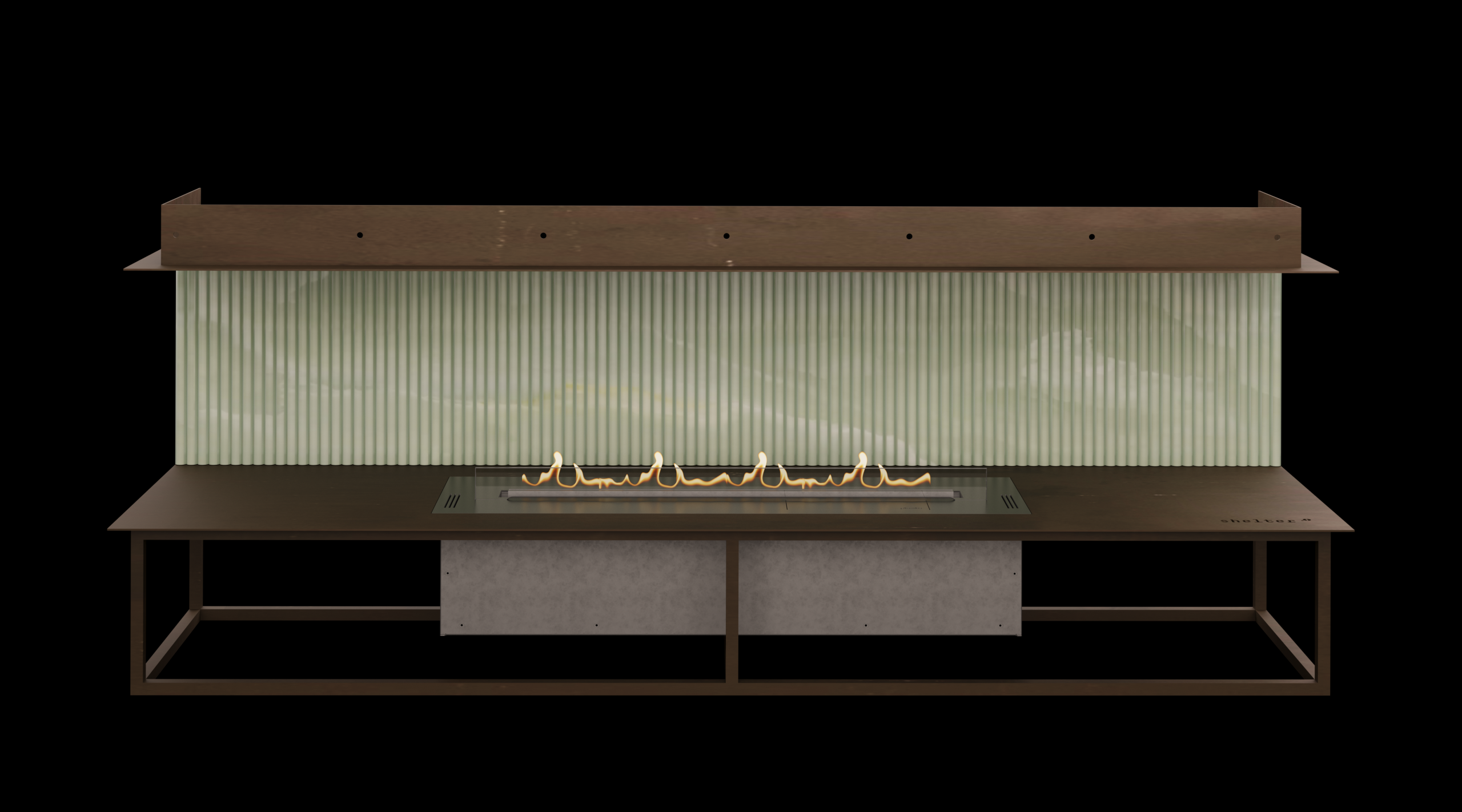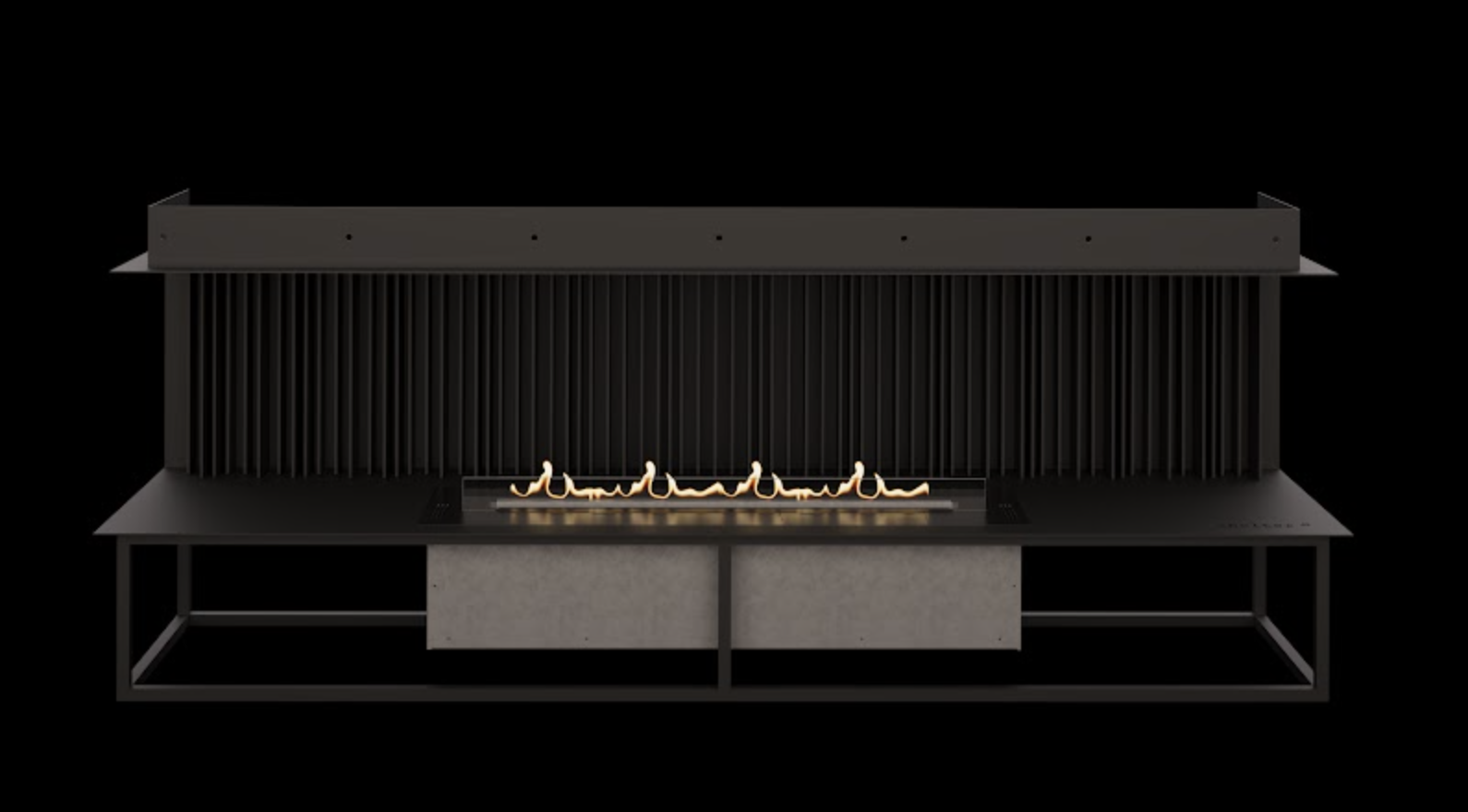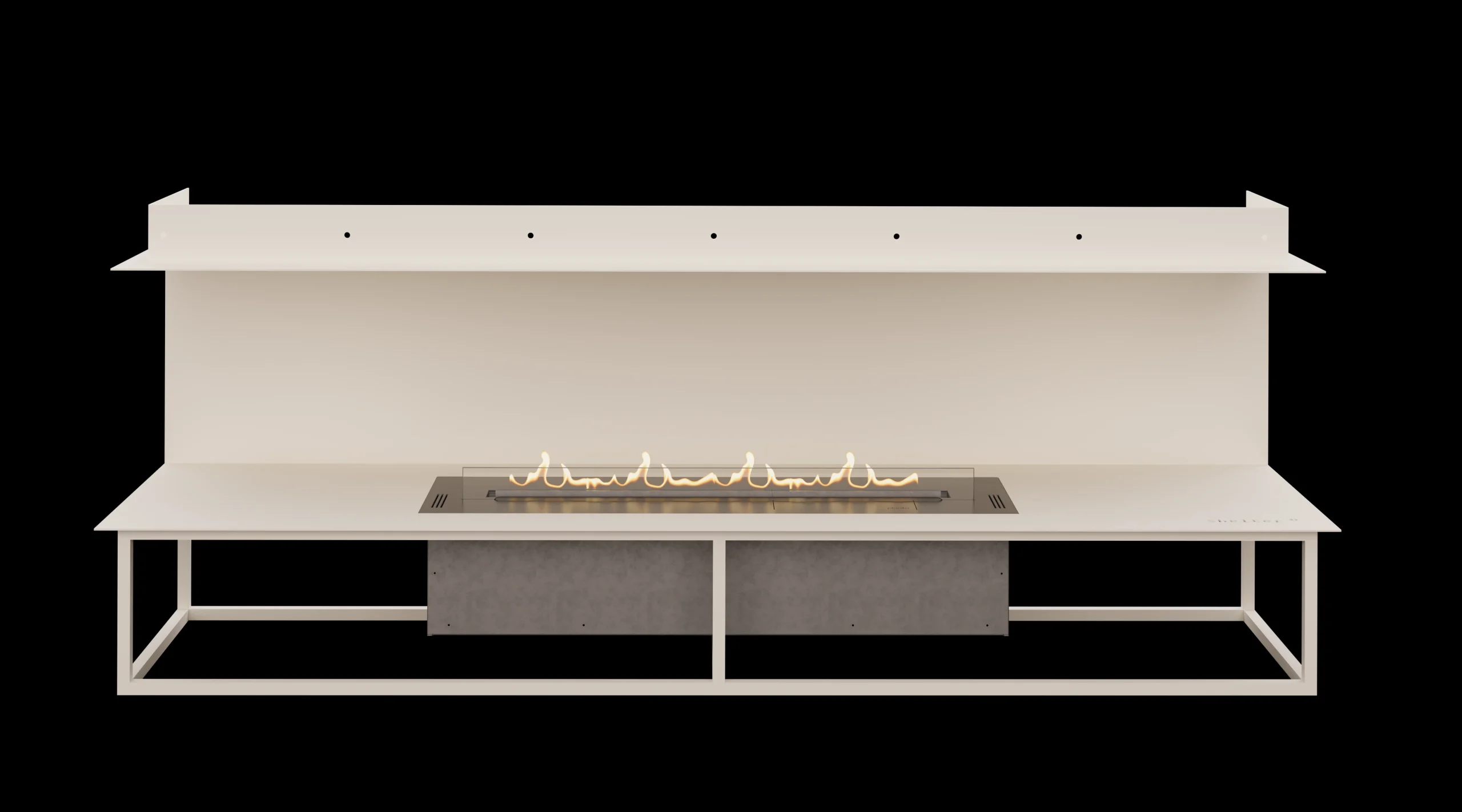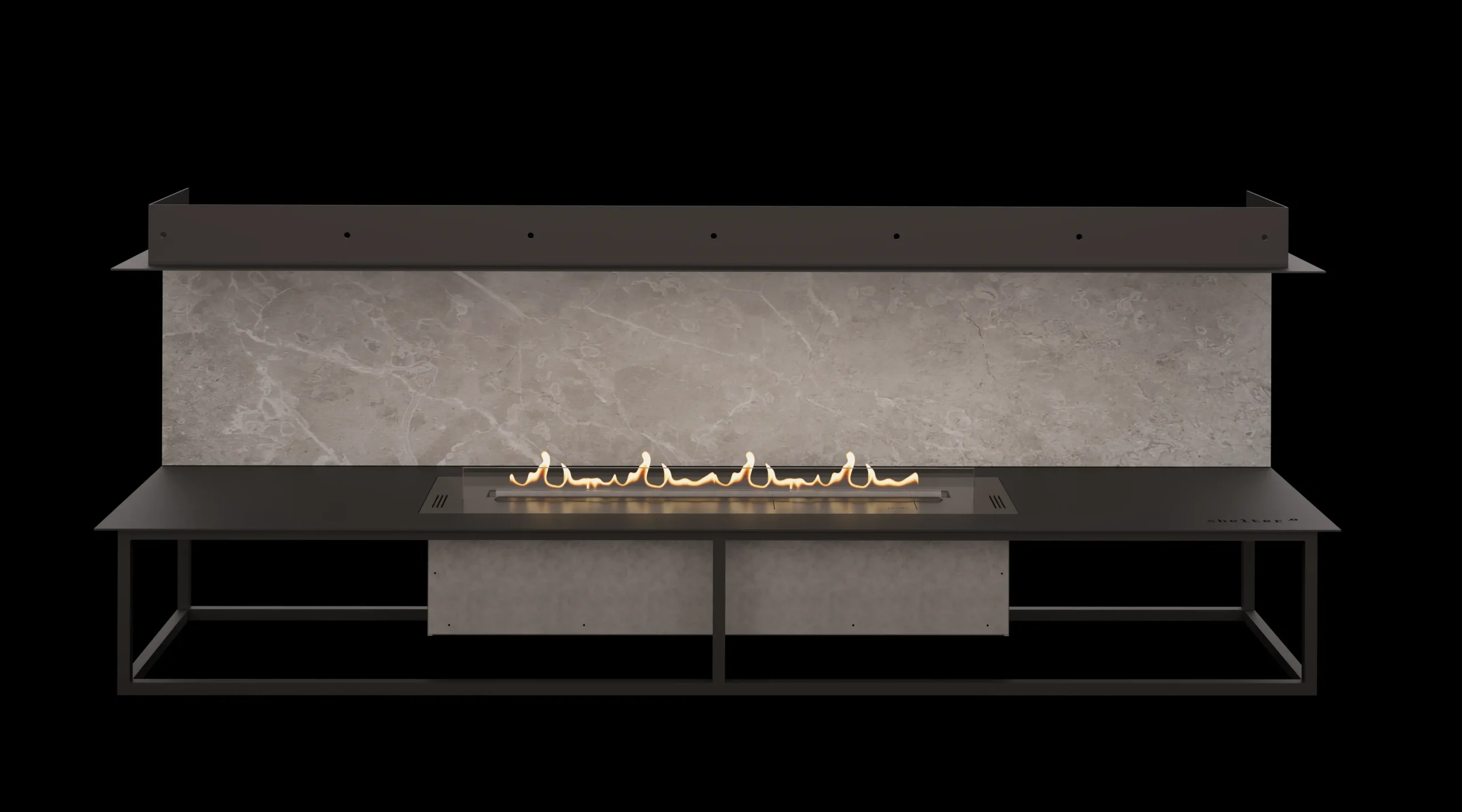 * Room divider, tunnel and island arrangements require higher glass panels alongside the burner to stabilize the flame from windblows.