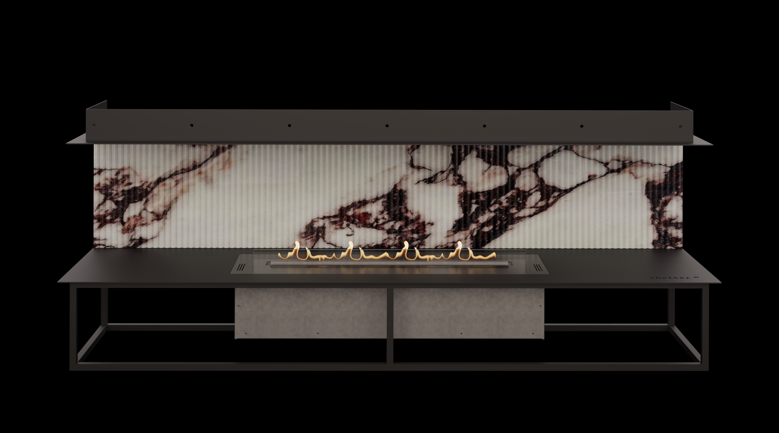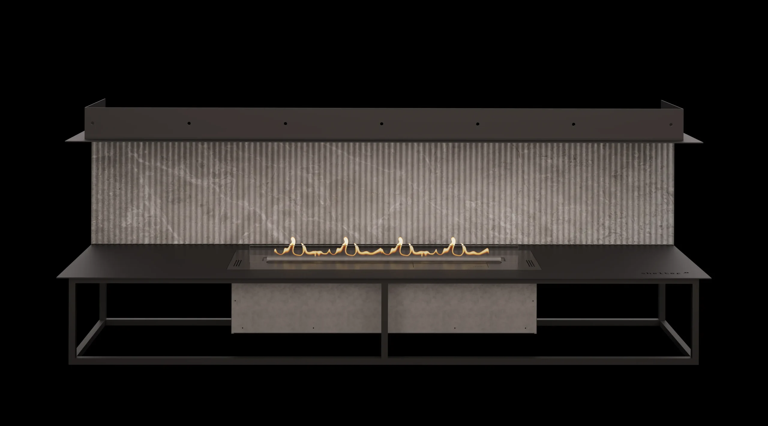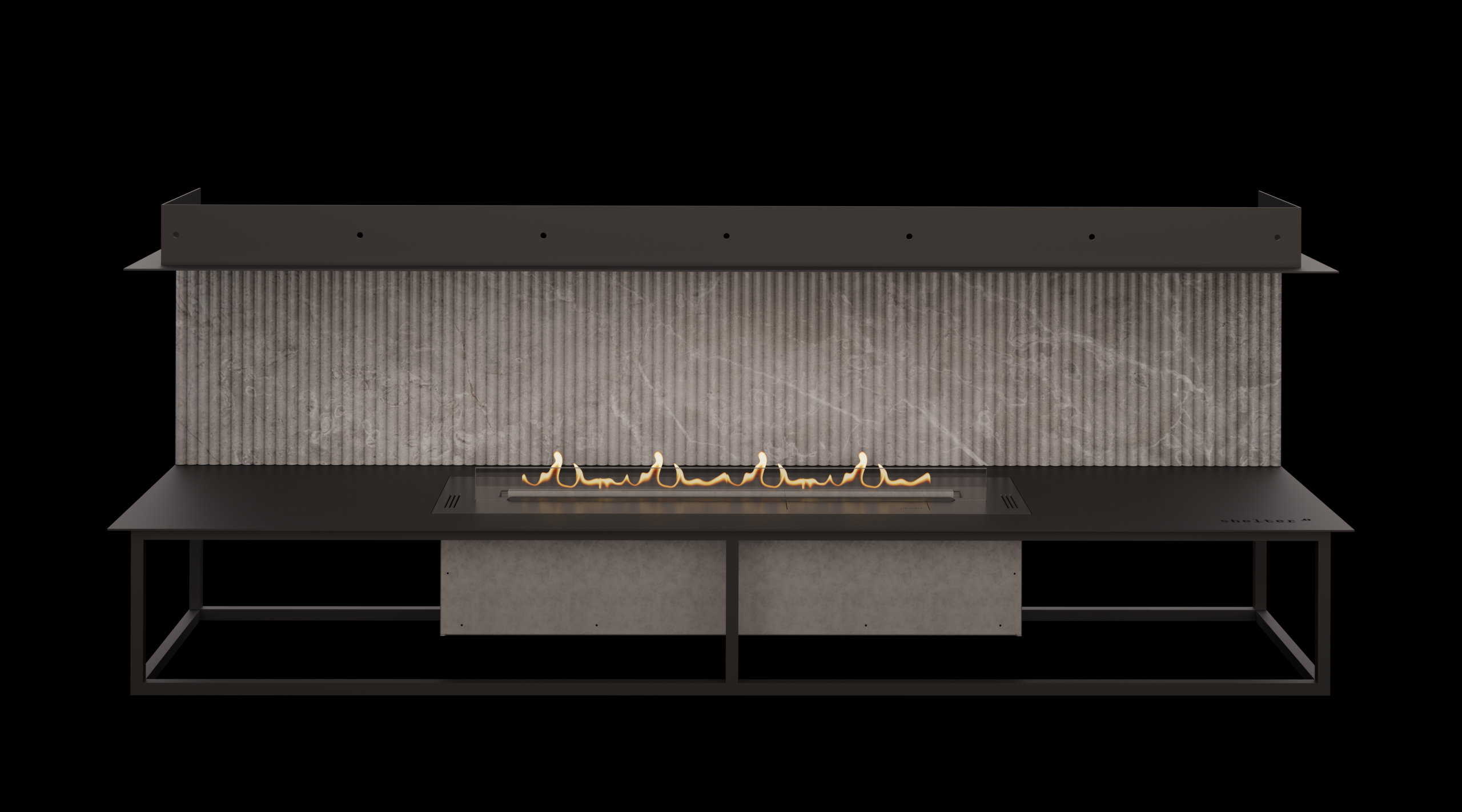 * Room divider, tunnel and island arrangements require higher glass panels alongside the burner to stabilize the flame from windblows.