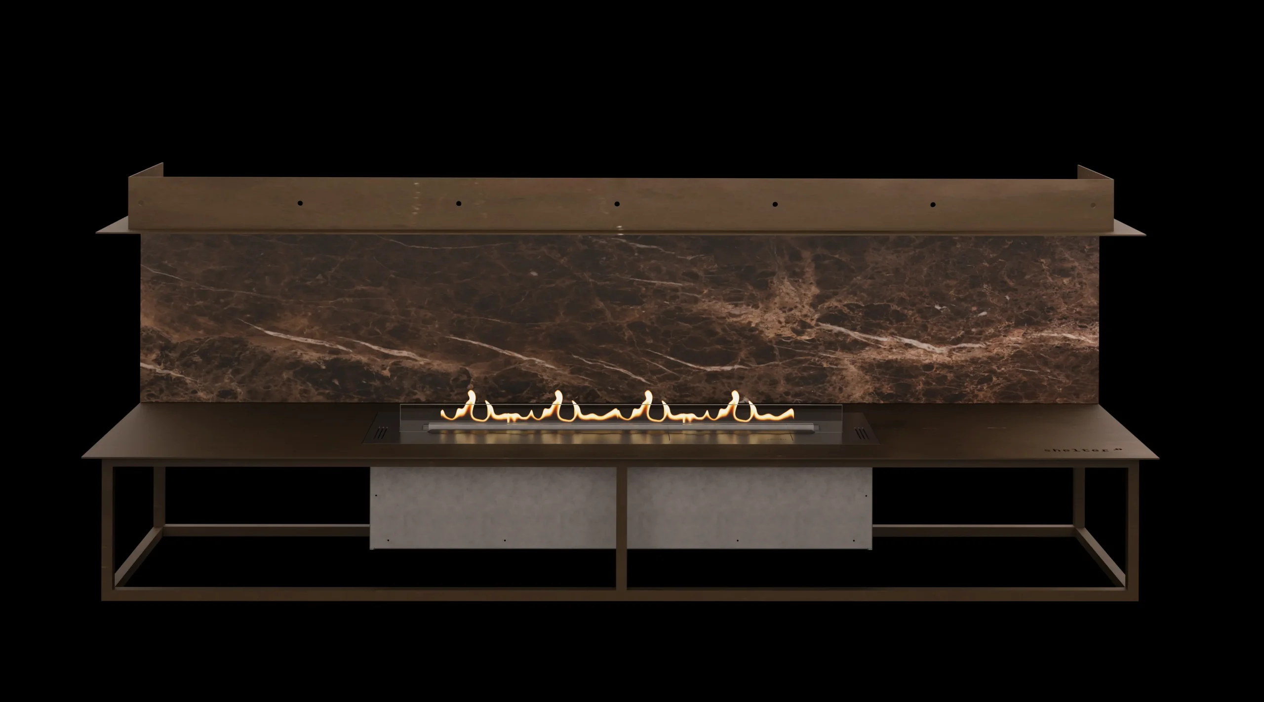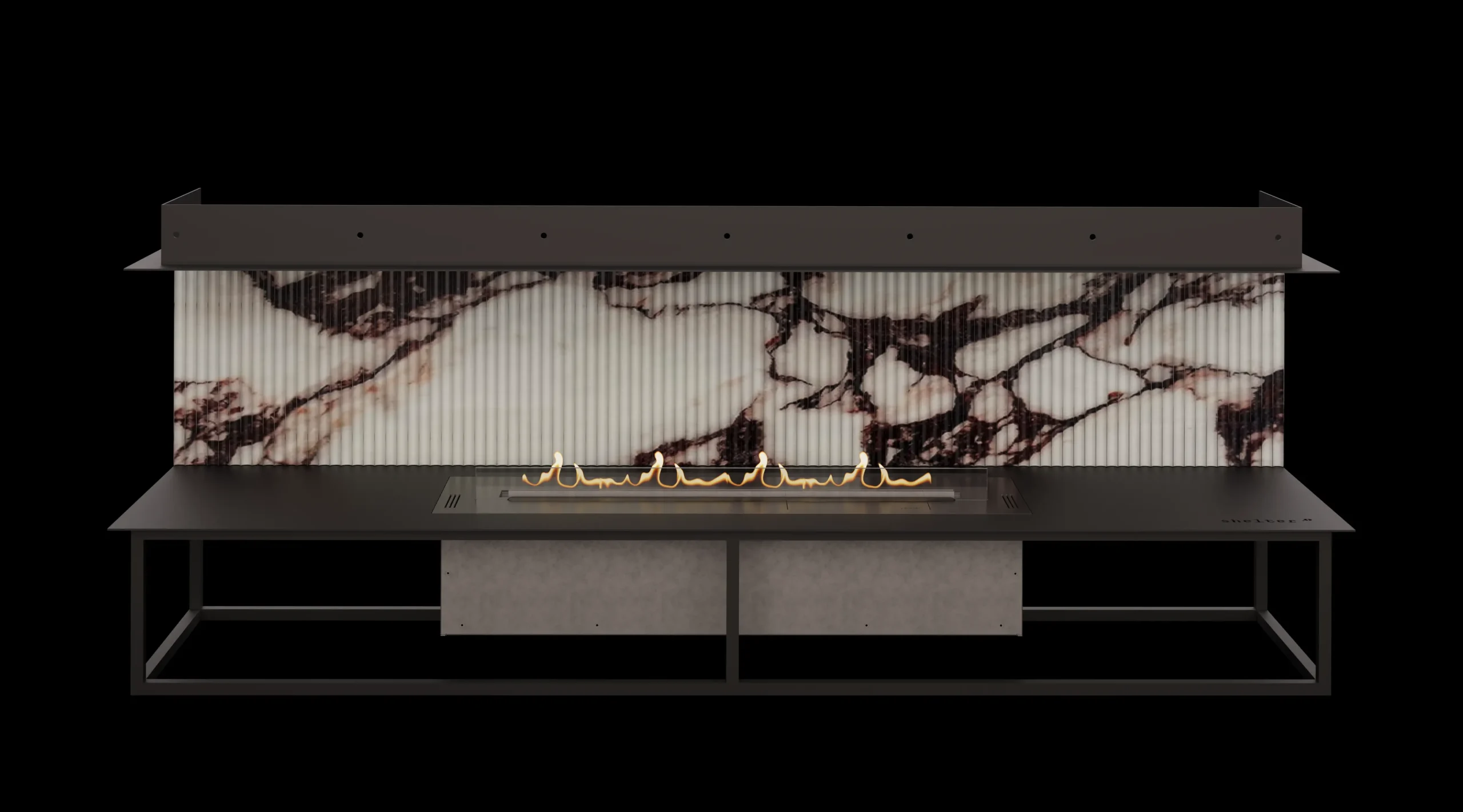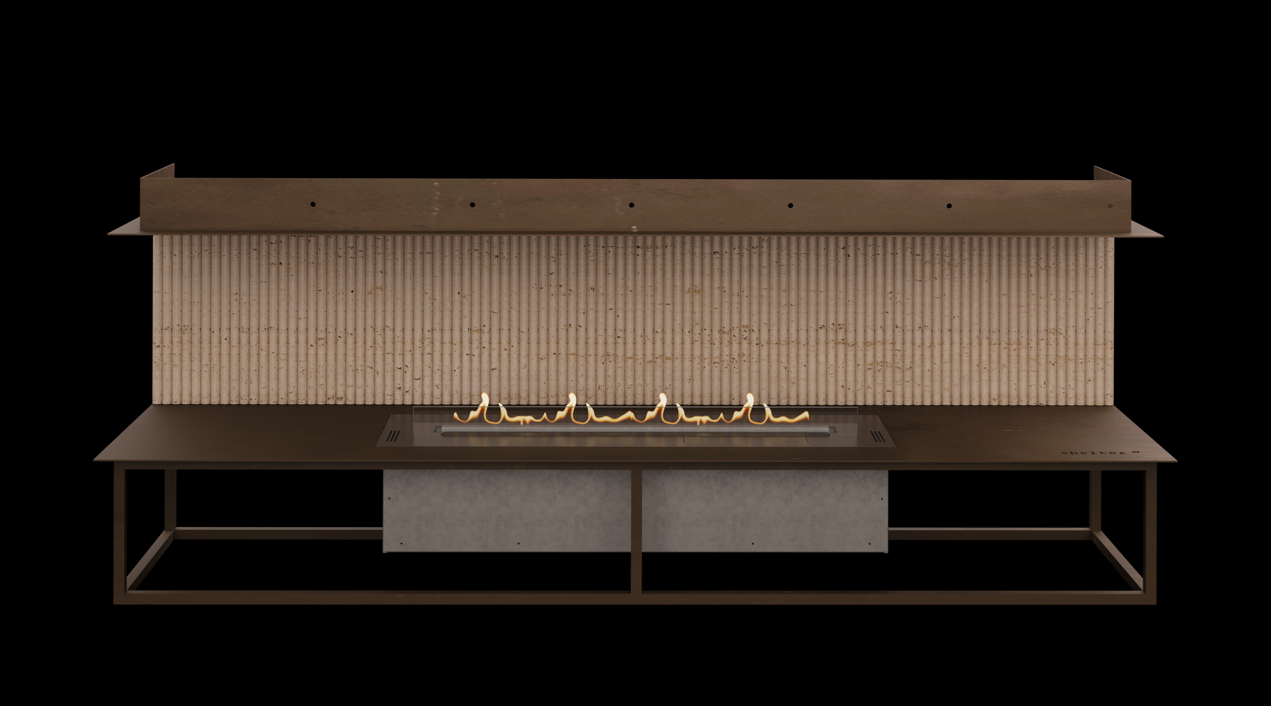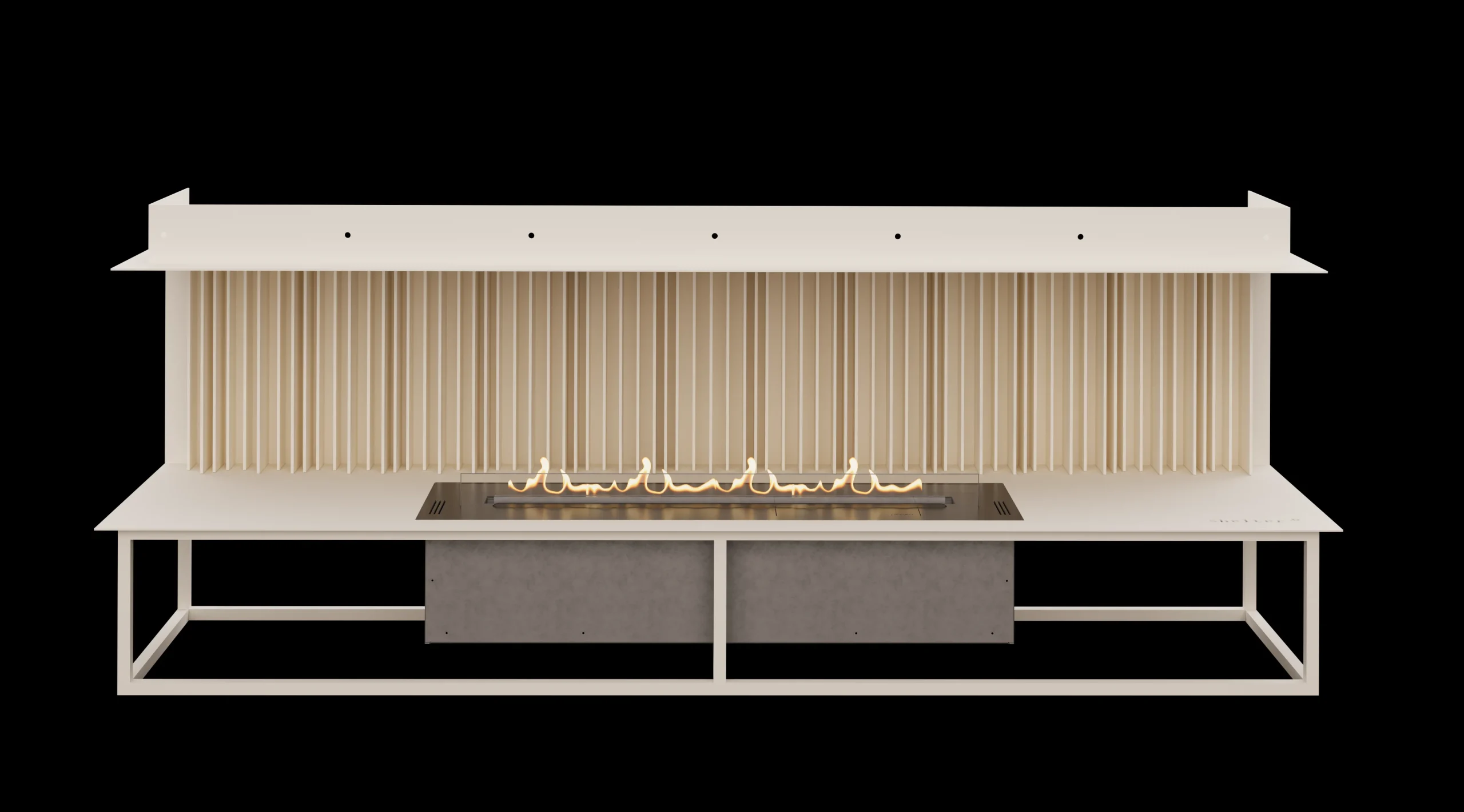 * Room divider, tunnel and island arrangements require higher glass panels alongside the burner to stabilize the flame from windblows.