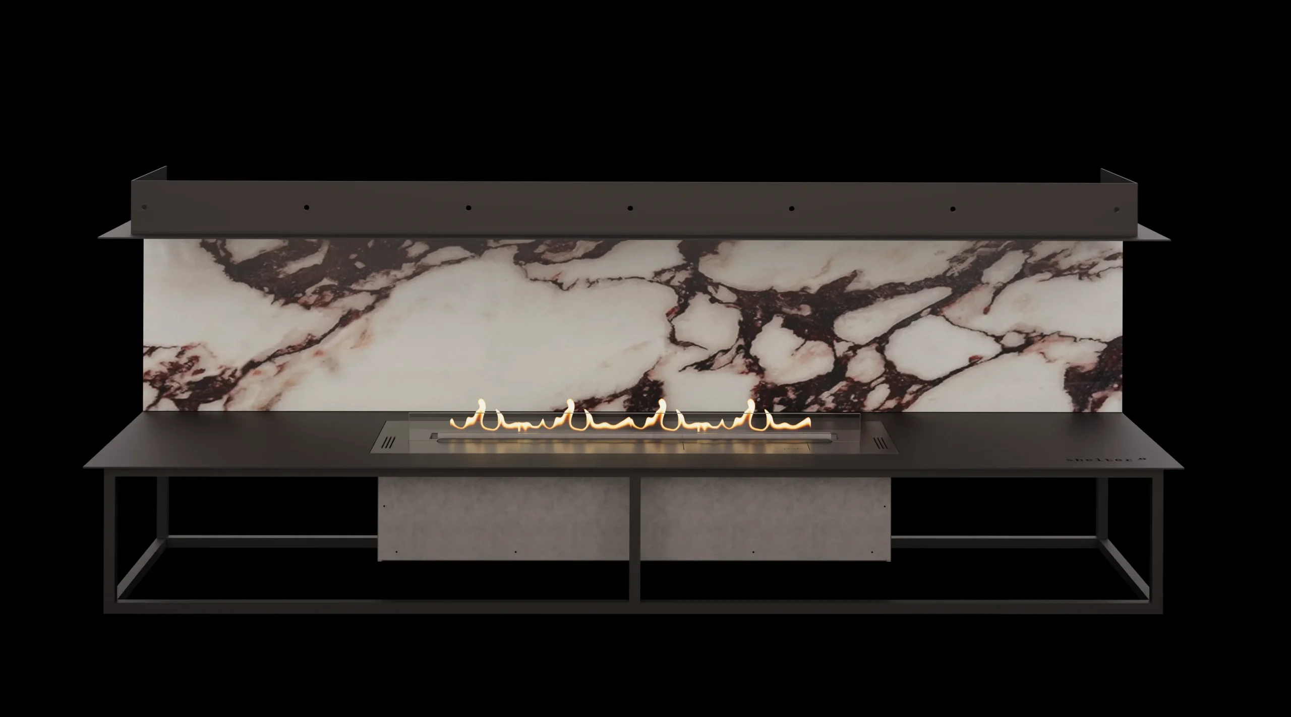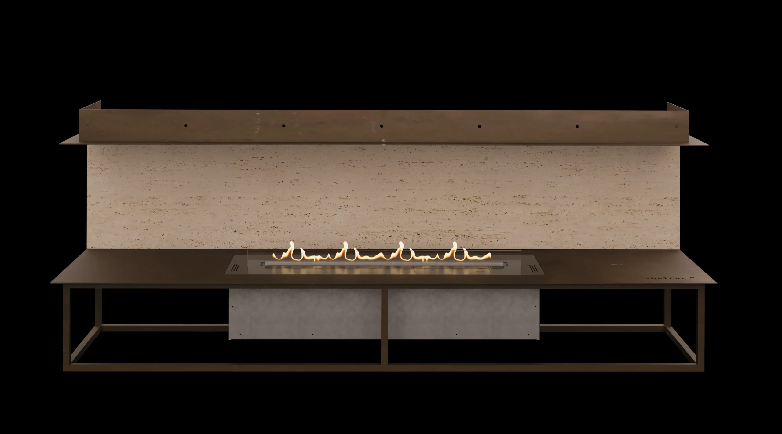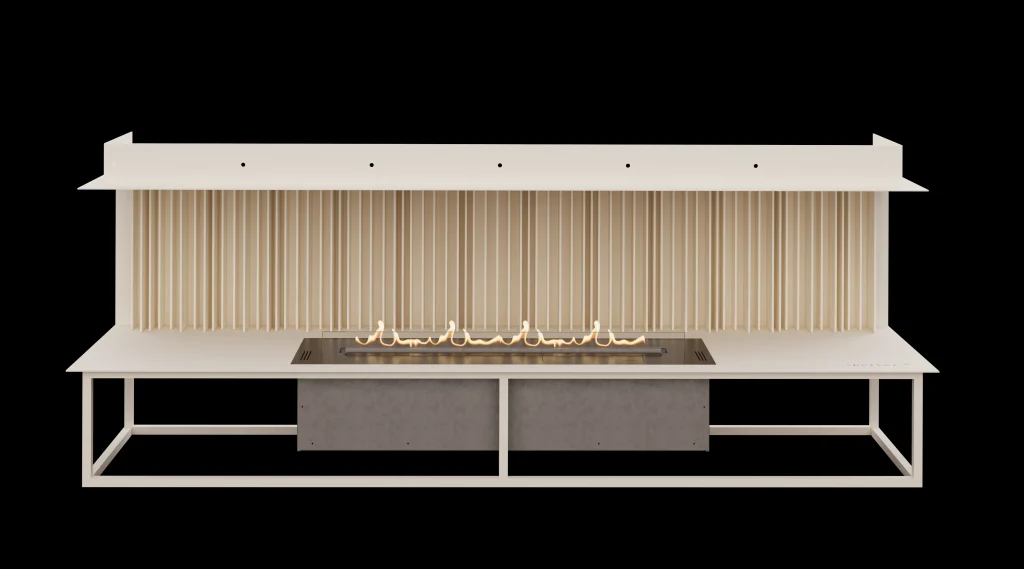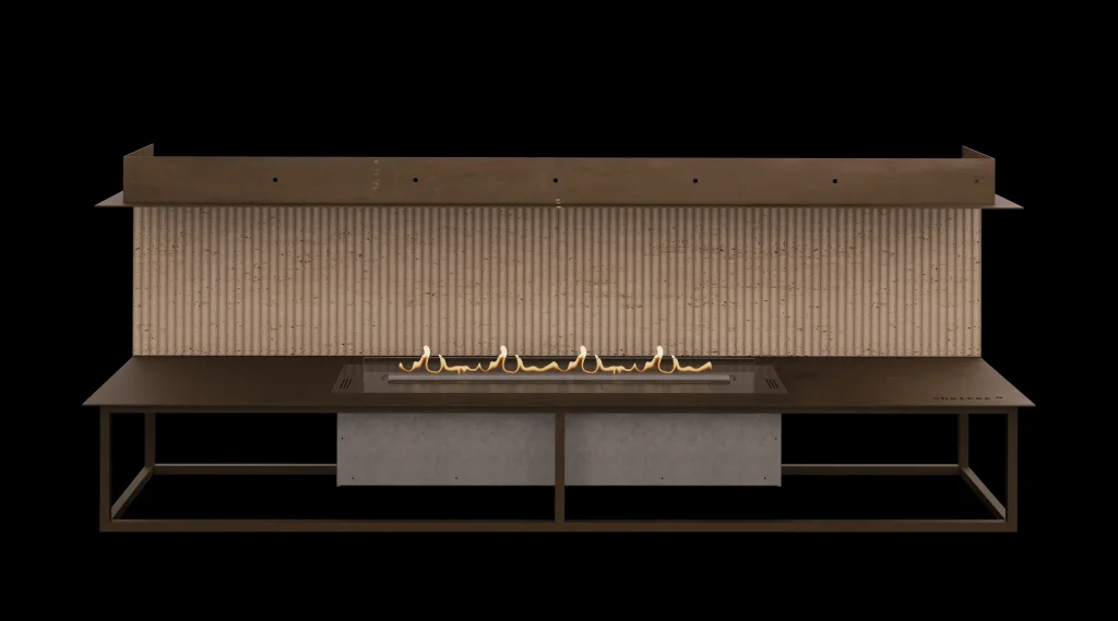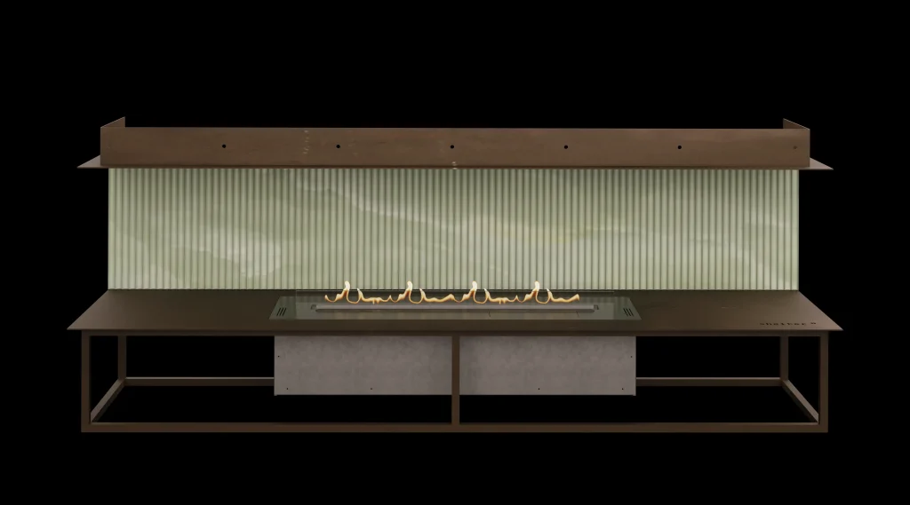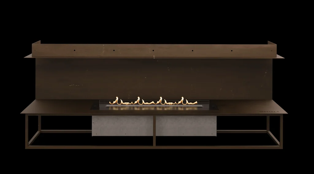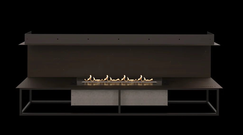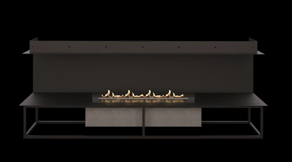 The FLA4 inserted glass panels, which serve both aesthetic and functional purposes. These glass panels are integrated into the fireplace design to enhance safety, stability, and flame visibility.