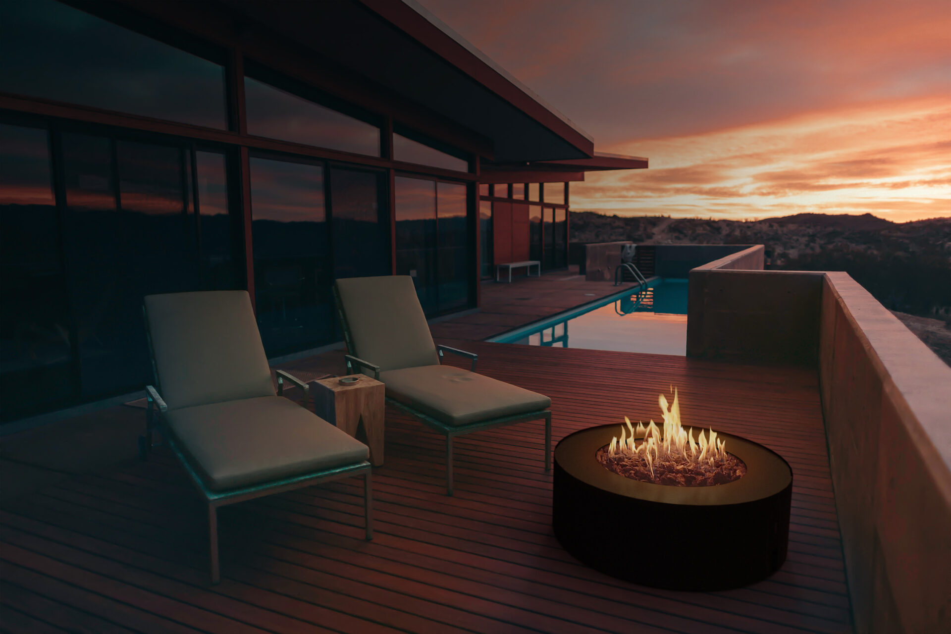 Queimador Stella para lareiras exteriores com tecnologia avançada.
