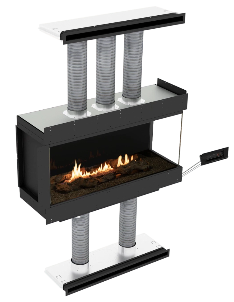 Panorama features wireless control options, allowing you to operate the fireplace remotely using a remote control. This enhances convenience and flexibility, making it easy to adjust settings.