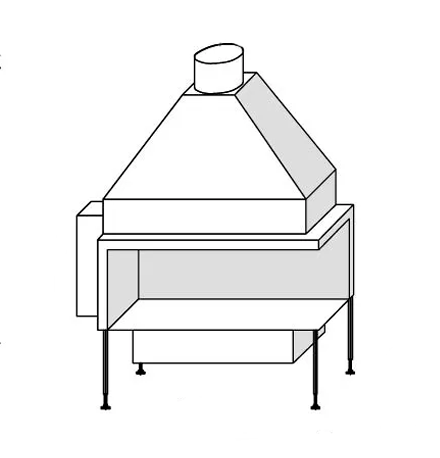 These feet can be adjusted in height both internally and along the outer side of the fireplace. If the highest foot position is insufficient, a supporting construction on which the fireplace can be placed must be installed. This must be stable and strong enough to bear the weight of the fireplace.