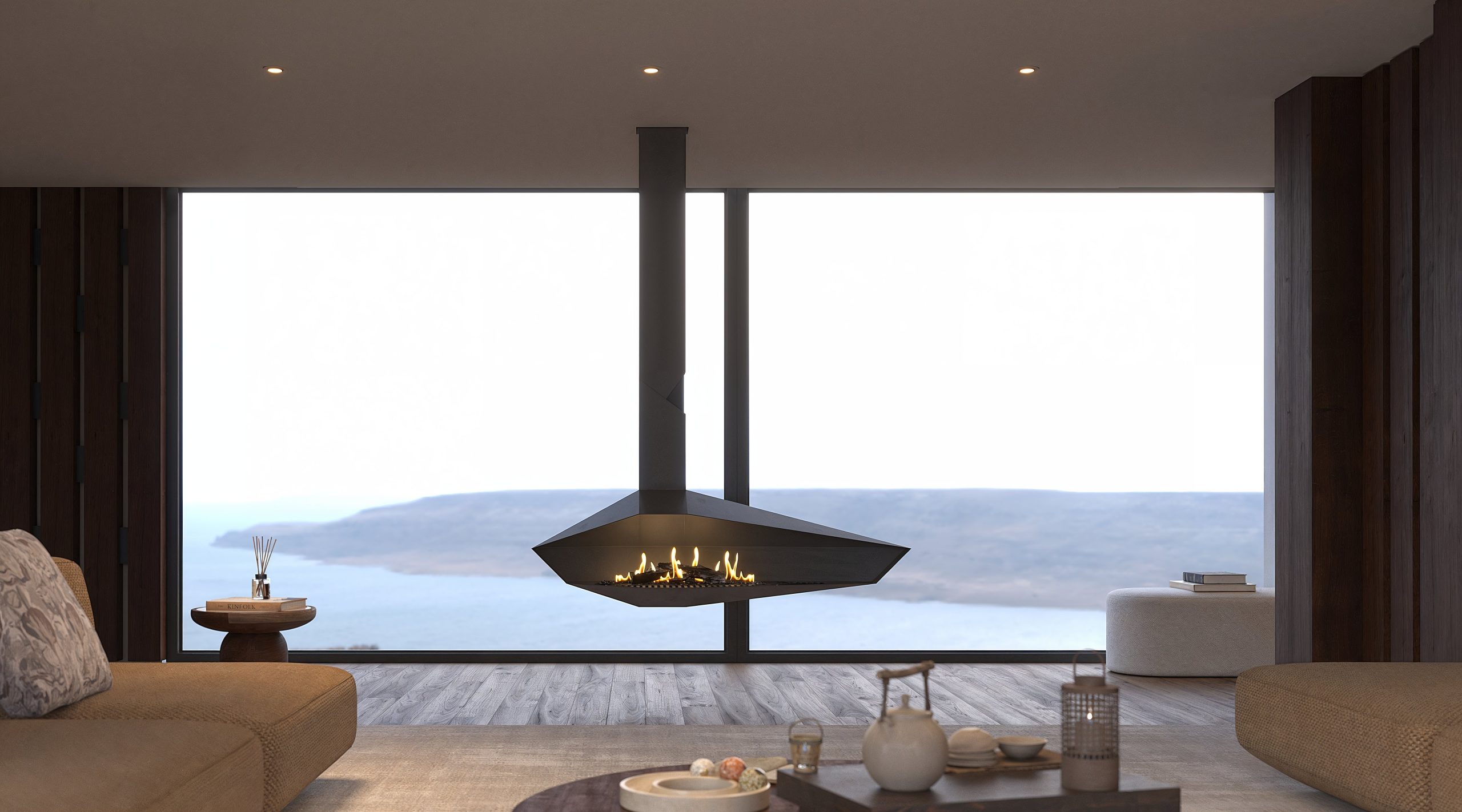 The Vortex is customized by the lightness of its asymmetrical form, referring to an imagery of space deformation, resulting in its striking image and dominant presence. Breaking with any definite convention of beauty, Vortex assumes itself as Shelter’s brand image, establishing a new paradigm of fire harmony.